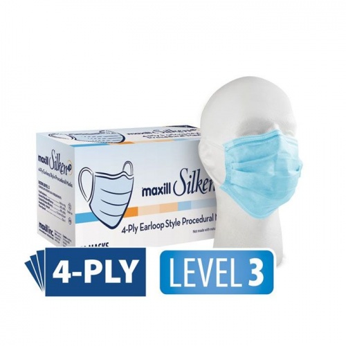 maxill Silken 4P 4-Ply Earloop Style Procedural Masks are not made from natural rubber latex and offer Level 3 protection*. The anti-fog foam strip provides added comfort and helps keep your glasses fog-free.